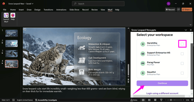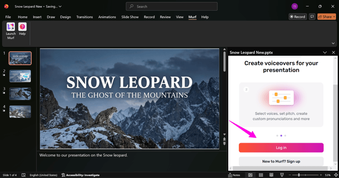 Here’s a step-by-step guide to launching and logging into the Murf PowerPoint plugin so you can create narration for your presentation.